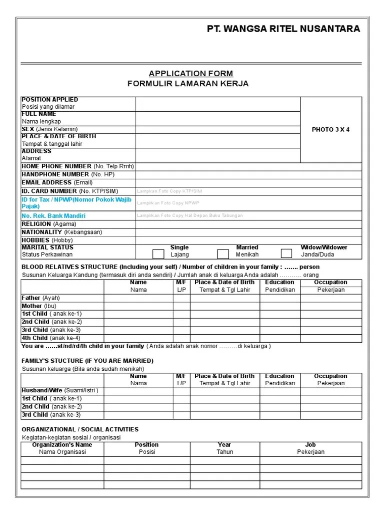 Contoh Application Form : Kostenloses Example Of Job Application Form