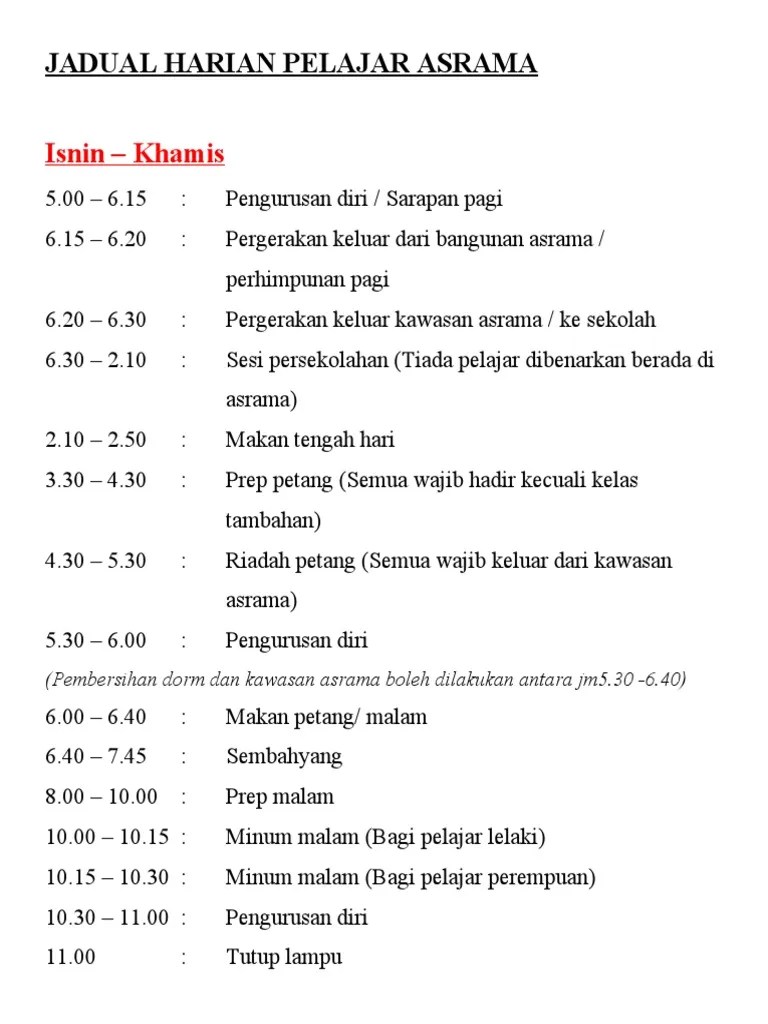 Rutin Harian Contoh Jadual Harian Pelajar Di Rumah - Jadual Aktiviti Pelajar Tadika Wildan Bestari